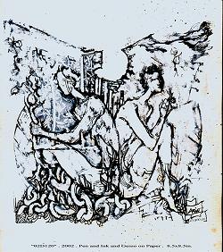 Paintings done by Iranian artist Ario Mashayekhi who now resides in Chicago, Illinois. Ario came to United States on December 23, 1978 and has since stayed. Ario studied fine arts, and he works professionally as a painter, sculptor, and actor. Visually, Ario represents the human condition through pain, sorrow, the struggle to survive, and the will to go beyond to promote the beauty of life.