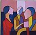 He uses vibrant and saturated colors. His figures are imaginitive and his style is original, pure and simple. He rarely exhibits his works, but lately he has started to show his paintings in Seyhoun Gallery at Melrose Avenue in Los Angeles.