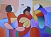 He uses vibrant and saturated colors. His figures are imaginitive and his style is original, pure and simple. He rarely exhibits his works, but lately he has started to show his paintings in Seyhoun Gallery at Melrose Avenue in Los Angeles.