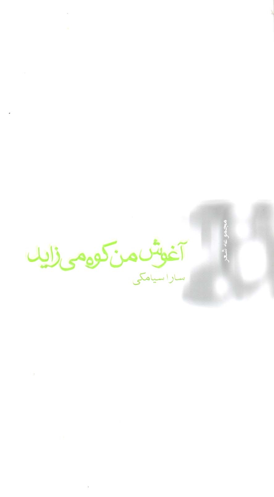 آغوش من کوه می زاید مجموعه ای ست در قطع پالتویی به تیراژ1000 نسخه و قیمت 1000 تومان حاوی18 شعر از سارا سیامکی شاعر خوب اصفهانی . شعرها بیشتر با بیانی روان و در دست رس ارایه شده و معمولاً مخاطب را در تنگ نای مفهوم و ابهام آن چنان نمی نهد . تصویر سازی ها گاه زیبا و ماهرانه و گاه آماتور مآب و ساده اند .