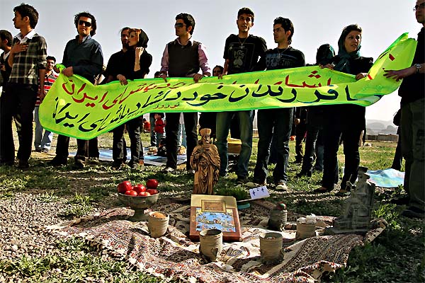 با رنج راهی طولانی و با پای پياده خودشان را به آنجا می رسانند تا تحويل سال نو را در کنار آرامگاه کورش سر کنند. روز زمين سفره هفت سين شان را روی زمين پهن کنند، و در لحظه تحويل سال نو به سوی آرامگاه گل پرتاب کنند.