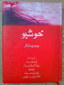 از پروین شاکر چندین مجموعه شعر بجای مانده. اولین کتاب شعر وی”خوشبو” نام دارد که در سال 1977 منتشر شد. این کتاب در کمتر از شش ماه بچاپ دوم رسید که این برای هر نوع کتابی در زبان اردو غیر منتظره است.پروین در مقدمه ی این کتاب با زبانی زیبا و زنانه خود را “دختر” خطاب می کند و از زبان این دختر سخن می گوید که بسیار تحسین همگان را بر می انگیزد. در جایی از این مقدمه می گوید: