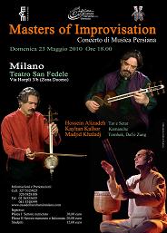 Nella tradizione persiana, l’improvvisazione, bedahe navazi, è una “composizione in tempo reale” e costituisce uno dei suoi tratti stilistici più significativi. Lungi dall’essere un esercizio virtuosistico e solipsistico, essa si pone al culmine del concetto di musica proprio della cultura persiana: all’improvvisatore è richiesta innanzitutto l’assoluta padronanza del radif, il repertorio tradizionale della musica persiana trasmesso di generazione in generazione. Solo a partire da questo, attraverso la creatività, la sensibilità, la memoria orale, la padronanza del proprio strumento, il musicista può giungere allo stile personale e inconfondibile che si manifesta nell’improvvisazione.Un concerto come questo diviene allora un’opera d’arte unica e irripetibile, che ci farà apprezzare lo stile e la potenza espressiva dei tre illustri maestri, allo stesso tempo compositori/improvvisatori, uniti nella forza mistico-estatica e nella luminosità delle loro creazioni spontanee.