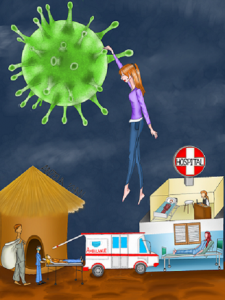 My painting shows how people are falling to illness and poverty because of the epidemic . 2020