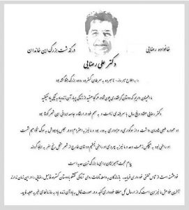 سپس متنی هم خودش از طرف بازماندگانش نوشته بود که پس از مرگش به دوستان و فامیل بفرستند را نیز برایم فرستاده بود که آنها نخواهند زحمت نوشتن آنرا بکشند!!!!