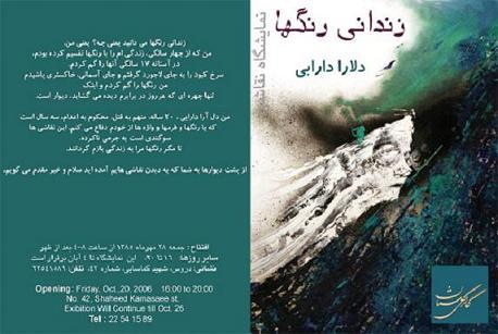 تصویر زیر، كارت نمايشگاه نقاشي دل آرا دارابي است. اين نقاشيها در سه سال گذشته در زندان رشت كشيده شده اند.